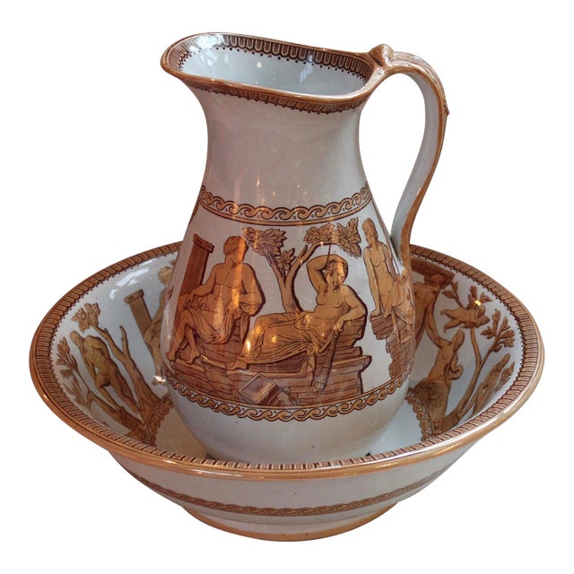 Antique English Staffordshire Bowl and Pitcher | Chairish